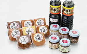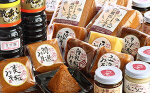 信州ソムリエみそ(玉造りみそ、低塩みそ、特選みそ、麦糀みそ、匠白みそ、匠赤みそ、雑穀糀みそ、そば糀みそ)、調理みそ(ふきみそ、とうがらしみそ、山くるみみそ)、塩こうじ、醤油こうじ、蔵出し醤油(濃口、うす塩)の入った玉手箱のような詰め合わせです。
