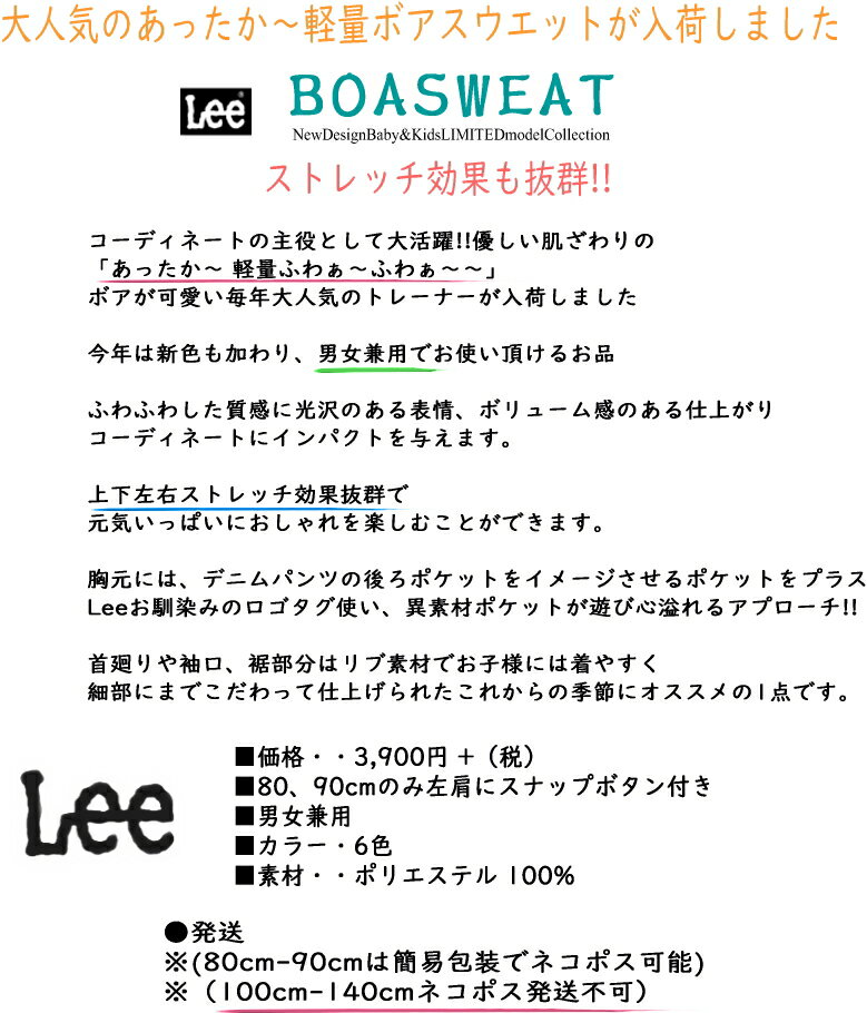 【30%SALE】 Lee x StompStamp Lee キッズ ベビー ボアフリース ストレッチ トレーナー 極 ふぁ〜ふぁ〜 ボア 【 数限定モデル 】防寒 キッズ あったか暖 ストンプスタンプ 可愛い プレゼント 出産お祝い リーキッズ デニム 男女兼用 ● 80 90 100 110 120 130 140 cm