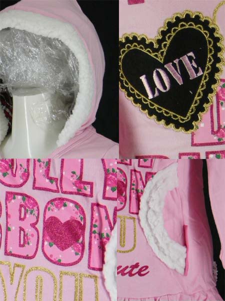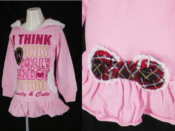 【DOLLY RIBBON】ドーリーリボン☆フード付長袖チュニック/ボア使い/プルオーバー/パーカートレーナー/キッズ/女の子/子供