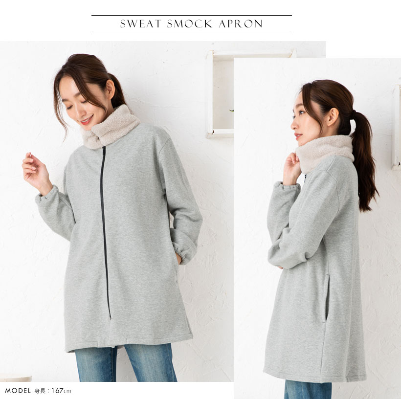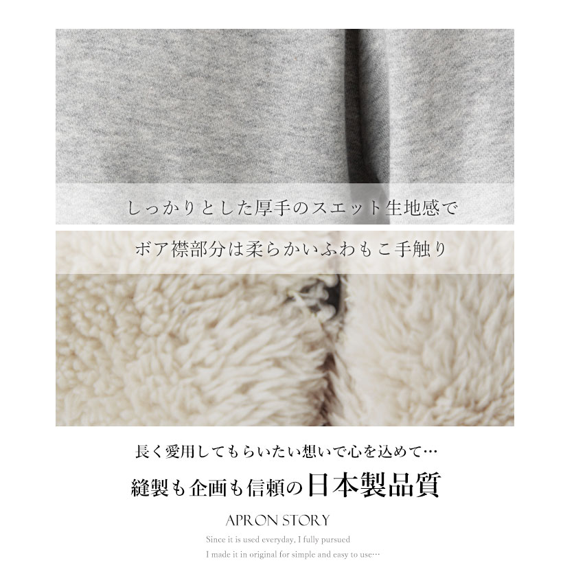 首元まであったかい ボア襟スウェット割烹着 日本製 スモック おしゃれ プレゼント ギフト 母の日【メール便1枚のみ対応可】【Y】