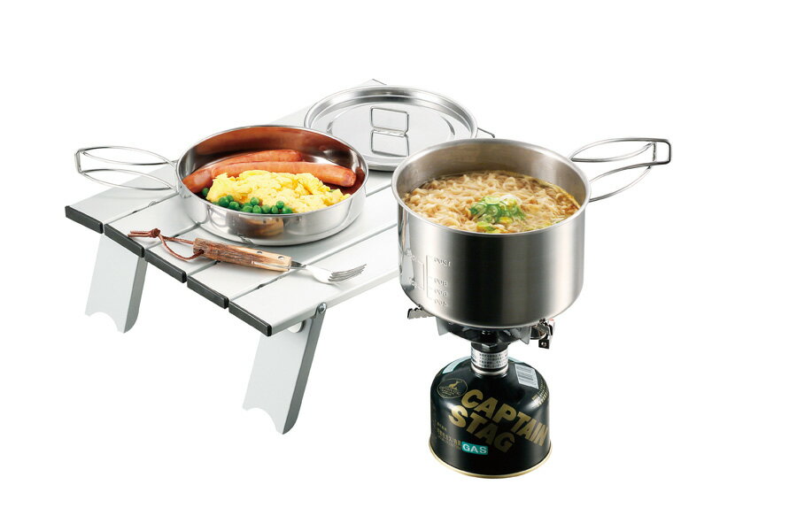 鍋は美しく、丈夫で錆びにくいステンレス製 フライパンもついてます インスタントラーメンがすっぽり入ります 【商品仕様】 セット内容:片手鍋1、ふた1、フライパン1 サイズ(約):17cm鍋:幅170×全長285×高さ100mm、18cmフライパン:幅180×全長275×高さ35mm 収納サイズ(約):外径180×高さ110mm 重量(約):550g 材質:ステンレス鋼 生産:燕三条地域 関連商品 ダッチオーブン・クッカー バーベキュー用品