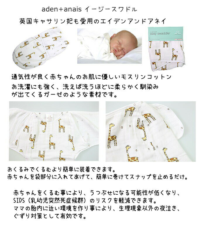 エイデンアンドアネイ おくるみ イージースワドル S/M Lサイズ aden+anais スワドルミー 出産祝い かわいい 退院 春・夏・秋・冬 【メール便なら送料無料】