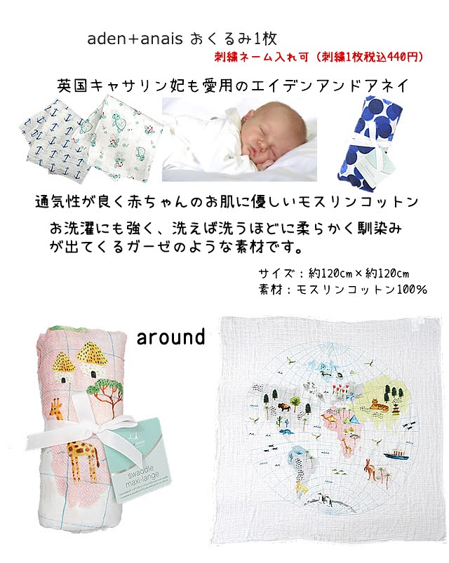 おくるみ エイデンアンドアネイ バラ売り ギフト・名入れ刺繍可 aden+anais 選べる1枚【米国正規品】出産祝い かわいい 退院 春・夏・秋・冬 【メール便なら送料無料】