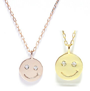 スマイル ラウンドプレート ダイヤモンドペンダント ネックレスニコチャン ホワイトゴールド ピンクゴールド イエローゴールド K10WG K10PG K10YG K18 pt900プラチナ別注可【楽ギフ_包装】誕生日プレゼント